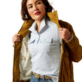 Lightly insulated and crafted from washable, waxed cotton, this modern jacket is the perfect layer for cool days. Cute quilting, a printed lining, and a subtle herringbone texture make it a style standout wherever you wear it.